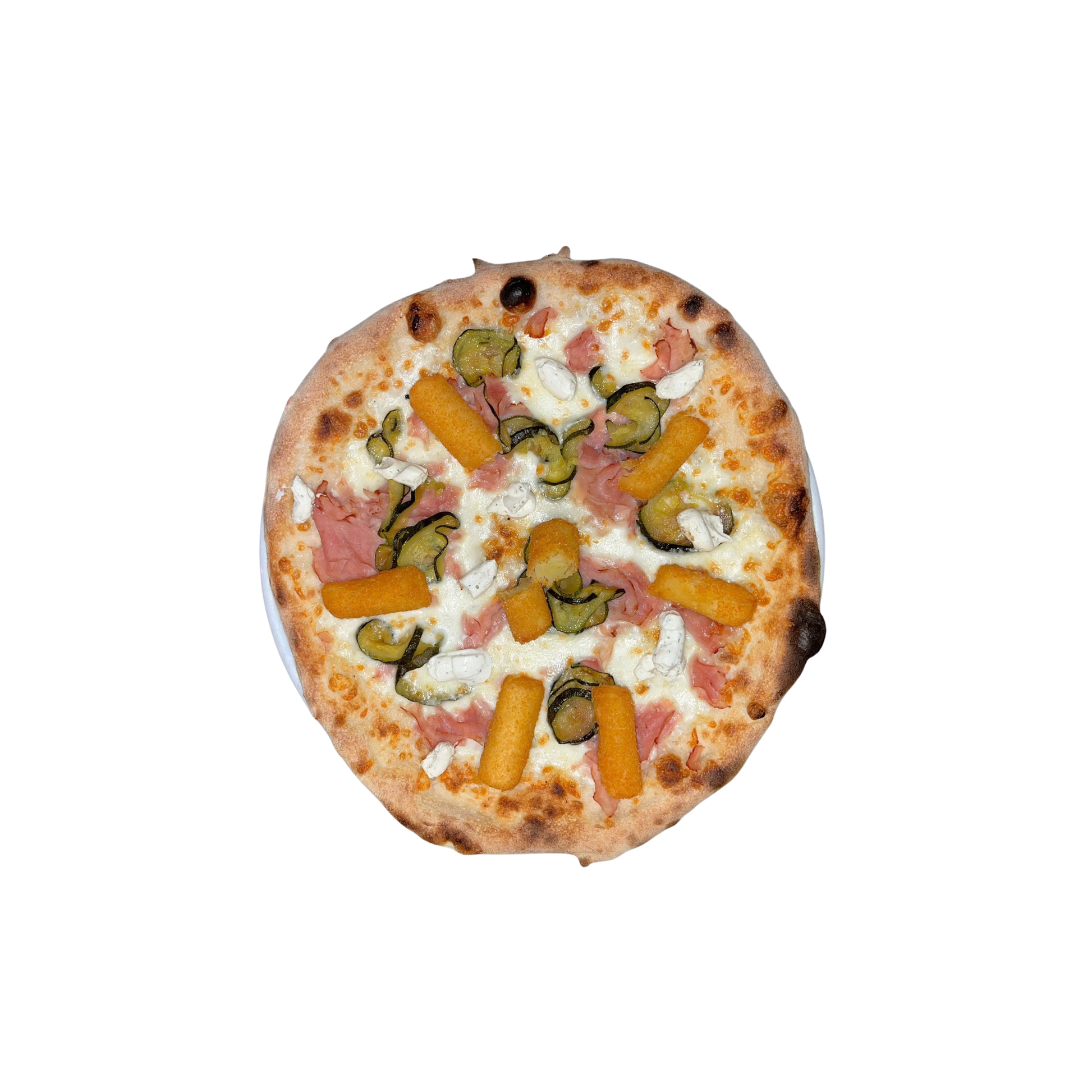 Composizione: Mozzarella, cotto, chips di zucchine, crocchè di patate, cantadou